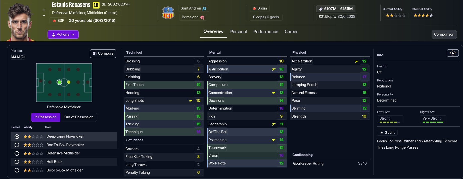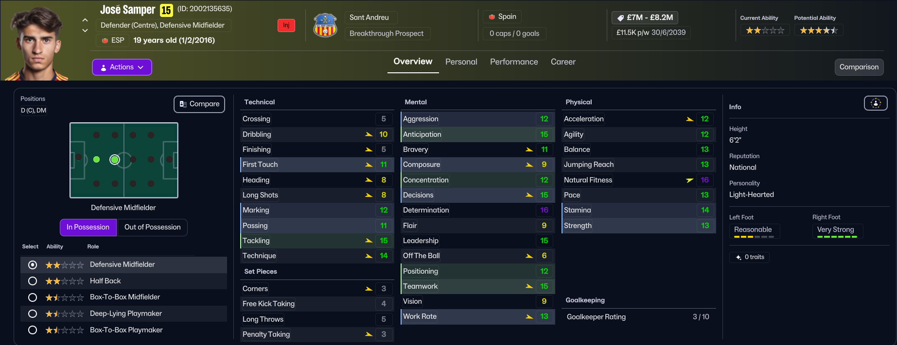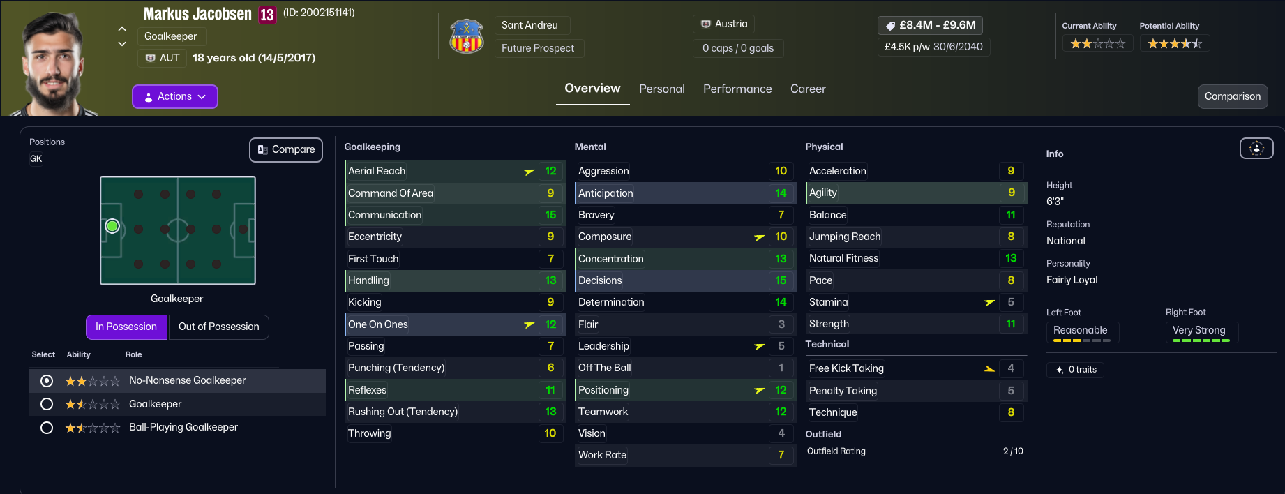The future at Sant Andreu was very bright, as Folleco and Pihl came 3rd and 4th on NxGn 2036, with Norbert 8th, left back Kelechi Suleiman 31st and Nilsen 44th. They also had another stellar youth intake with 4 elite prospects and 2 top players, led by 5-star potential attackers Aran and Carlos Morer and midfielder Dimitrije Radojicic. That takes the club to 23 players with 5-star potential, 13 of which are in the under 19s, as well as six more with 4.5-star potential. The best of the lot, potentially, is winger Souleymane Kouadio, along with Folleco, Cunha, Espinola, Morar, Grima, Henrique Mira, Aran, and last year’s intake stars Pablo Guerrero and Aran Herrera.