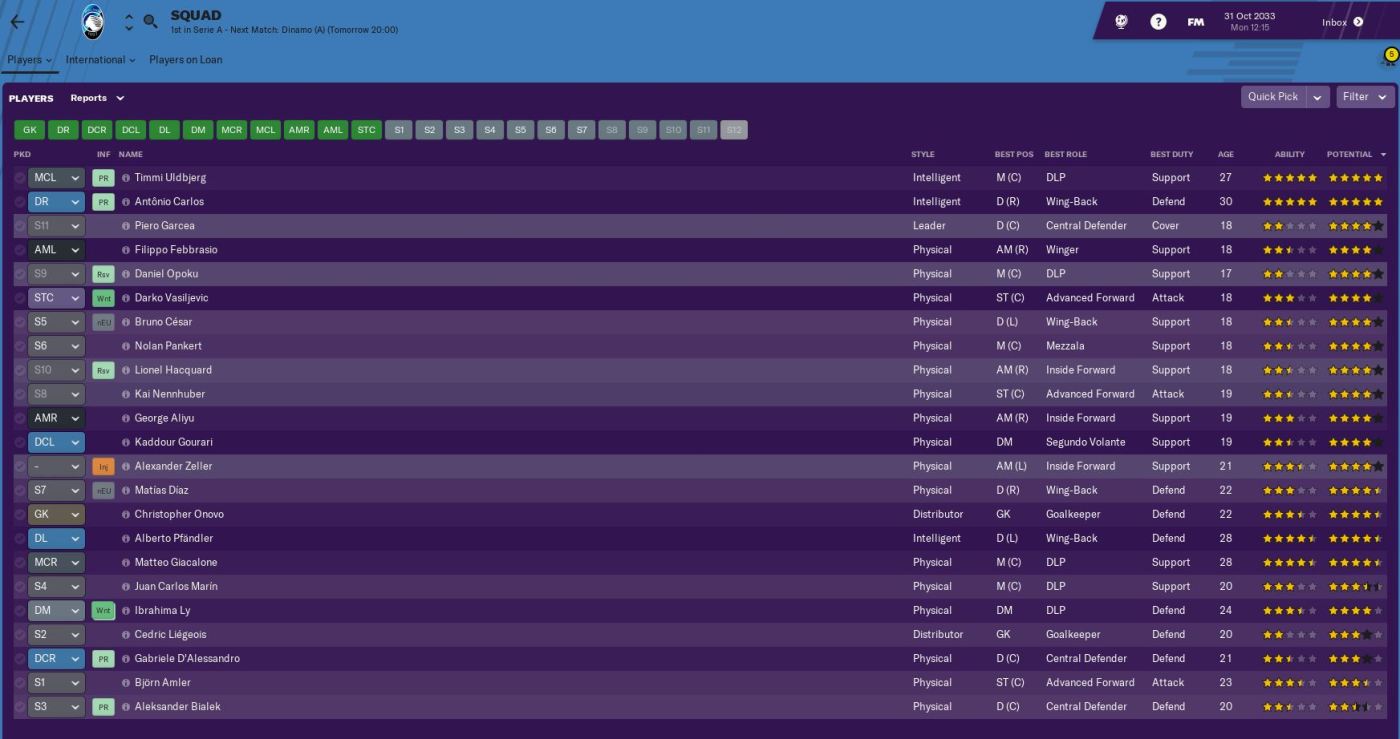 Another Atalanta youth product, Febbrasio was expected to be one of the best players of his generation when he came through our youth intake in 2031. He swiftly became the youngest goalscorer in the club’s history, impressed on loan at Lecce the next season, and has moved into our first-team for 2033/34. I’m expecting this guy to be really special, which is why I decided to sell Edward Mensah in the summer of 2033.
