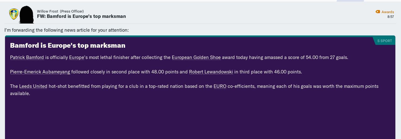 That unsurprisingly also earned him the personal accolades of Footballer of the Year and Players’ Player of the Year. What a season for Patrick Bamford.