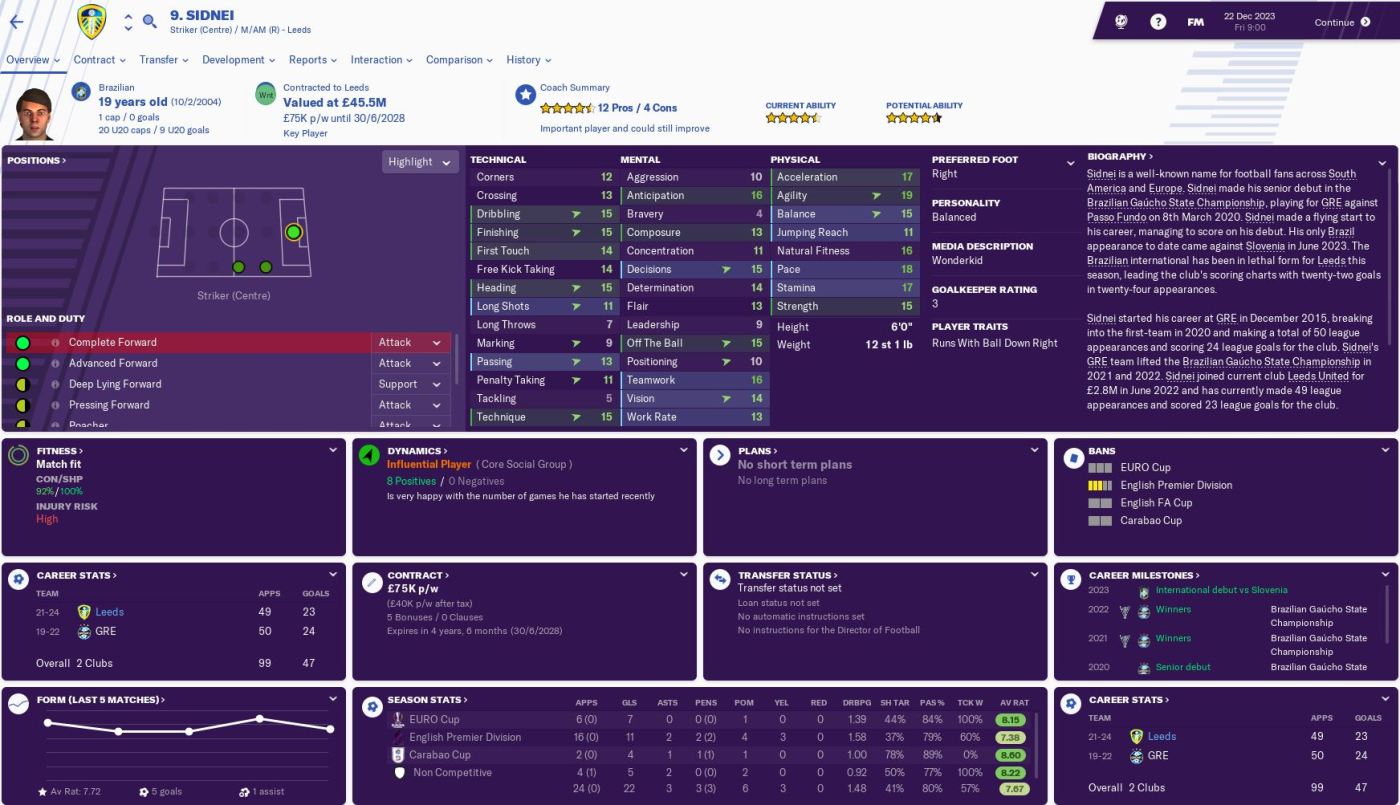 In their place we brought in several exciting youngsters. Possibly the most exciting short-term was Brazilian left-winger Christopher Doro – who looked like the perfect backup to Rodrigo De Paul, who we’d convinced to sign a new contract over the summer – for £13 million from CEC.
