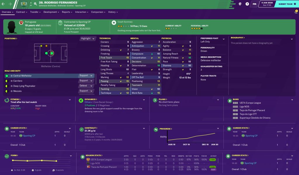 This was enough to win the Manager of the Month accolade – despite Benfica being top of the league on goals scored. This delighted my Director of Football Hugo Viana, who Newcastle United fans of a certain age may remember, as he made a public statement praising my early success. Holding midfielder Wendel also won Goal of the Month with his lovely long-range effort in the opening game of the season.