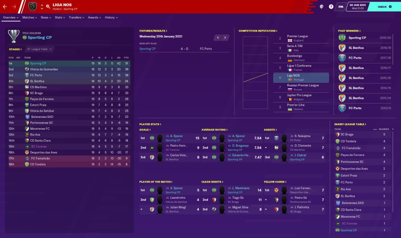 Having established a commanding lead at the top of Primeira Liga, Sporting Lisbon faced two January battles with SC Braga and FC Porto then looked ahead to a Champions League clash with Real Madrid.