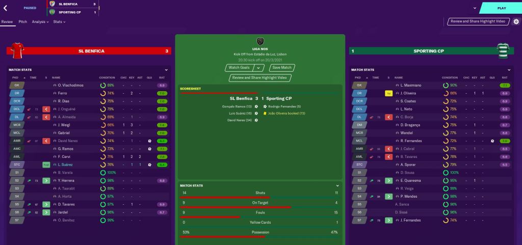 Another 4-0 win at Belenenses SAD, thanks to a Joelson Fernandes opener, a Jovane Cabral brace and Sporar, was sandwiched by a 1-1 draw at home to FC Famalicao and 0-0 at CS Marítimo, in which we had one highlight all match despite having 21 shots.