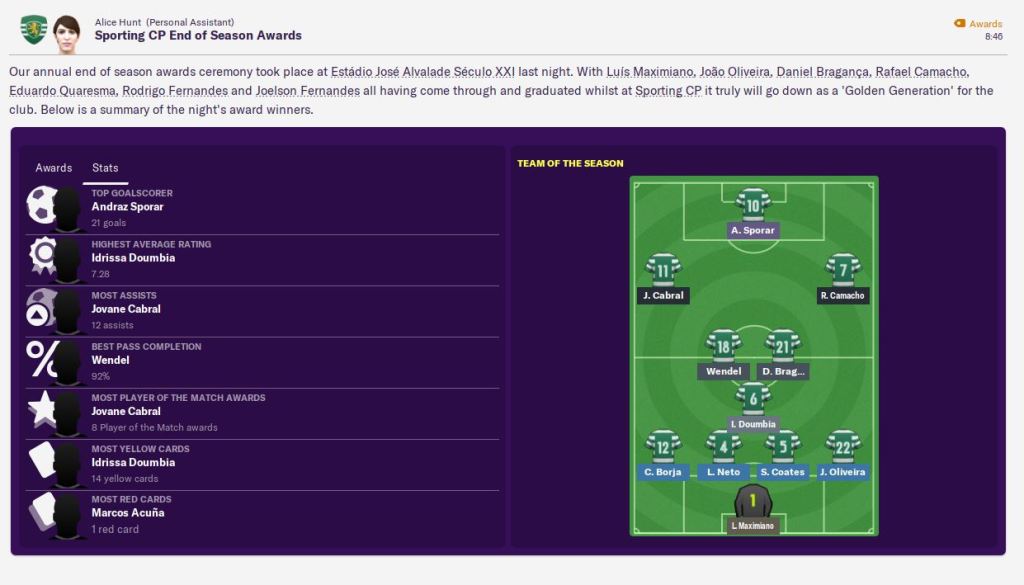 This led to Doumbia taking home the Fans’ Player of the Season award with 35% of the vote, followed by Coates (29%) and 22-year-old Braganca (27%), whose excellent form has already earned him a new contract. Doumbia, however, wants more than £50k a week, so a new contract could be a big ask. Eight of our players were also acclaimed to be part of a “Golden Generation” at Sporting.