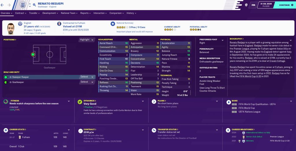 Plus, there’s plenty of exciting young talent alongside them. For example, two Fulham products goalkeeper Renato Redjepi – that’s why we don’t need Pickford – and midfielder Curtis Morton, West Ham defender Takudzwa Marufu, and Newcastle holding midfielder Neil Stephenson, who looks very good indeed.
