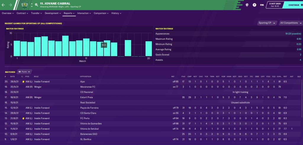 On the back of that game, Jovane Cabral had the absolute gall to ask me for a new contract after this spell of form (in which the 6.0 against Pacos de Ferreira was actually a 5.9 when we took him off), which has led me to not only dropping him but considering cashing in on him. Absolutely baffling.