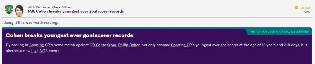 That was until the 84th minute, when Mendes got on the end of a cross from Cristian Borja only for it to be saved by the keeper. I presumed that was the chance gone, but Cohen got onto the ball, shot and then it rebounded back off his boot and into the net. The 16-year-old had scored on his debut and won us the match. What a moment for the youngster as he became the youngest ever Primeira Liga goalscorer!