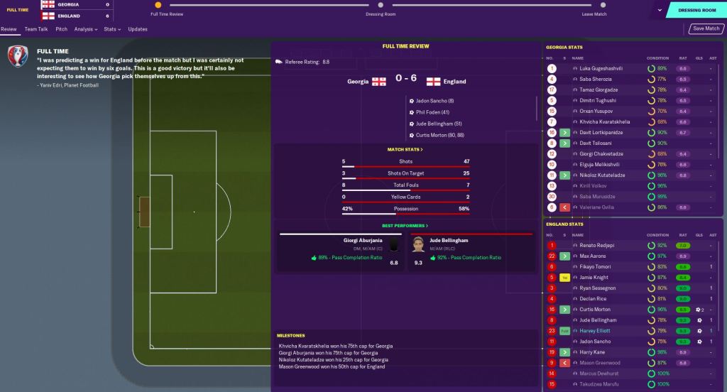 I think that may well wrap this save up, having started as an experiment to play Football Manager for 24 hours on my birthday. However, I have really enjoyed the different challenge of international football so I may well press on with it and see if we can take England to the World Cup.