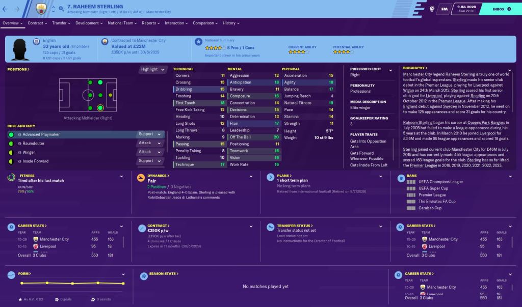 Immediately after the win Raheem Sterling retired from international football (again), and I won’t be convincing him to return this time. Although that said, he tied Peter Shilton’s caps record with 125 at the Euros. He was joined in retirement by Jack Butland, who I’d personally forgotten existed.