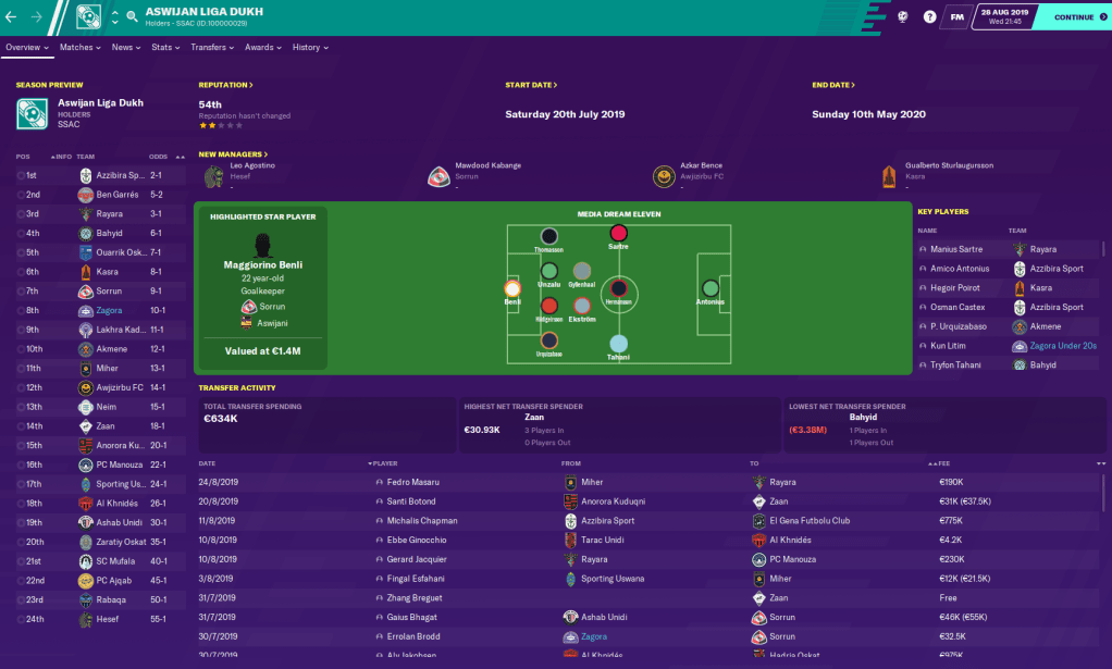 As previously discussed, I wanted to begin my managerial career in Aswijan at the lowest footballing tier available. And that meant starting out in the Liga Dukh, which is the third tier below the Liga Principale and the top tier Liga Regale.