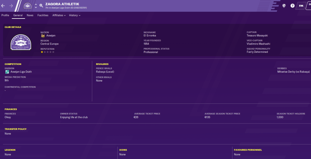 Ladies and gentlemen, welcome to the brand new country of Aswijan for a Football Manager 2020 save that’s a little bit different. If you haven’t read the introduction to this series then go and give it a read here. If you have, then let me introduce you to our new life in Aswijan.