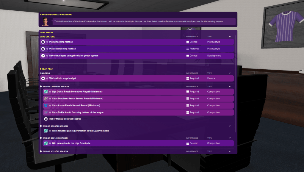 We’ve signed a one-year deal in Zagora and have been tasked with playing attacking, entertaining football with the aim of finishing in the top half of Liga Dukh. I think that’s do-able. The club also want us to develop young players despite the aforementioned lack of youth facilities, which could be more tricky.
