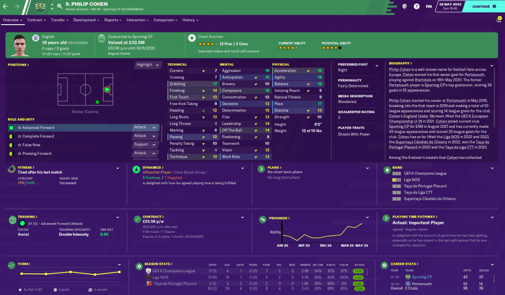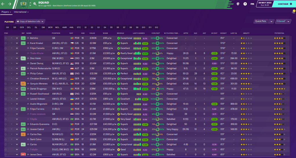 According to my coaches, the most exciting prospect is young goalkeeper Betinho, who was the star player of our latest youth intake. While the 4th player on the list Thabo Khune, who played well out on loan this season, was the star of the previous year’s intake. In fact, none of the top four potential talents at the club are yet in the first-team. We also had 16 players called up for the Euro Under 21s, which says a lot about the young talent at the club.