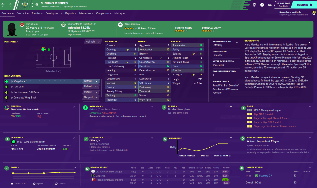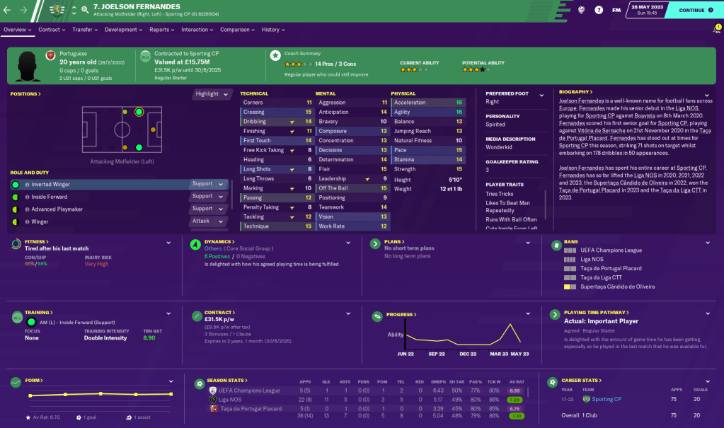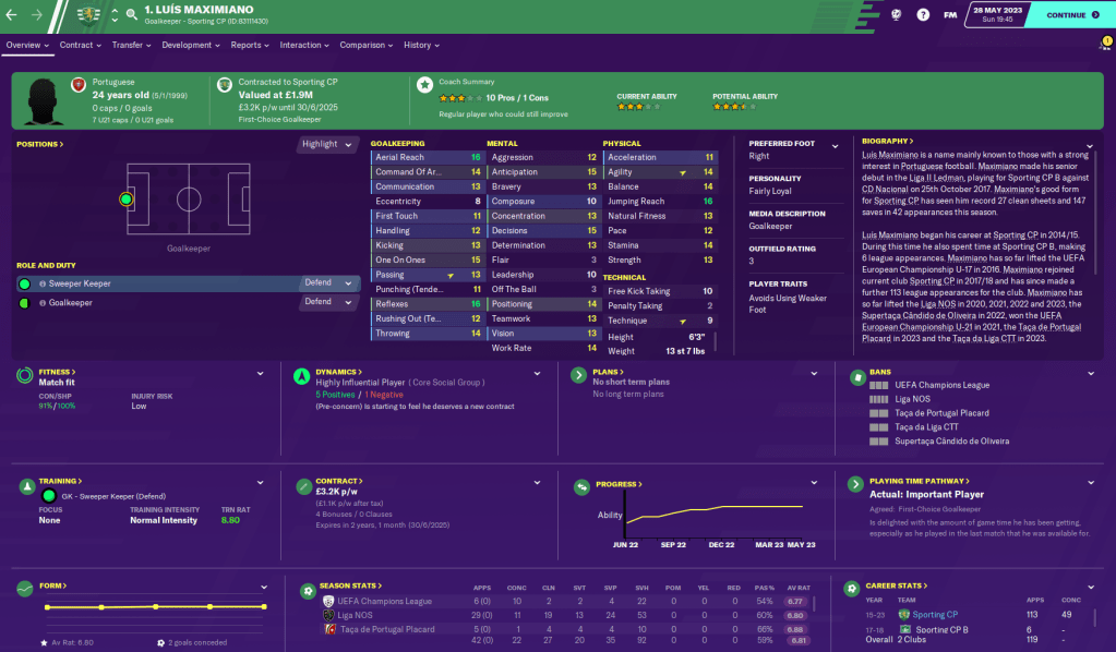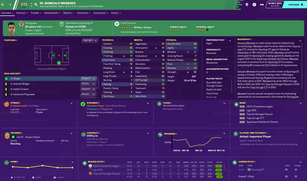 Another key player has been academy product right winger Goncalo Meneses, who chipped in with an impressive 14 goals and 13 assists in 47 games – not far off his ridiculous debut season of 14 goals and 18 assists. While fellow young academy product winger Joelson Fernandes came up with 13 goals and a slightly disappointing 7 assists in 50 matches.