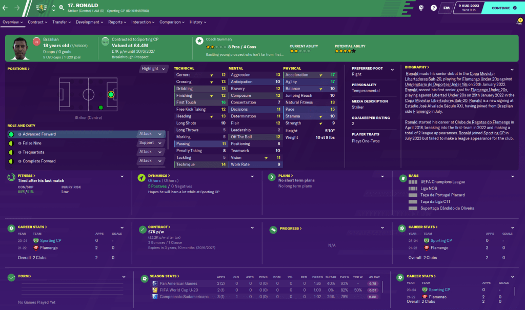 In their place, we’ve signed three exciting youngsters. Brazilian striker Ronald came in for a potential £9 million and looks like a great prospect, Andres Contreras offers a good backup defensive option and winger Joao Roberto is one of a batch of Brazilians I’d pre-signed a couple of years ago.