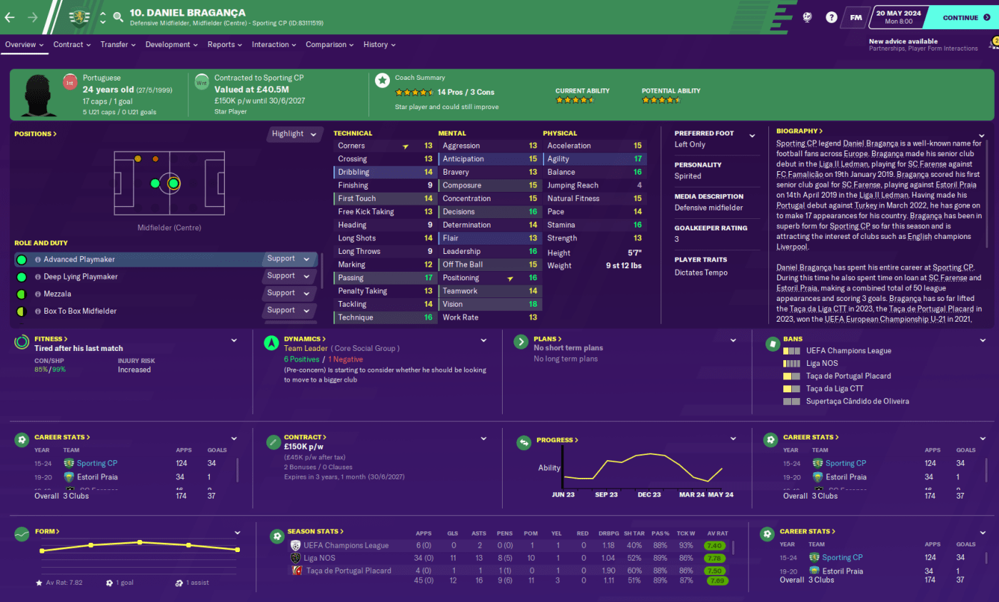 Braganca – who has now officially become a Sporting Lisbon legend – had bids from Spurs, Man United and Barcelona and I demanded a minimum £150 million, which is easily what I’d have to pay to replace him. And they soon all disappeared. While Meneses had derisory bids from Chelsea and Dortmund that I flat out rejected.