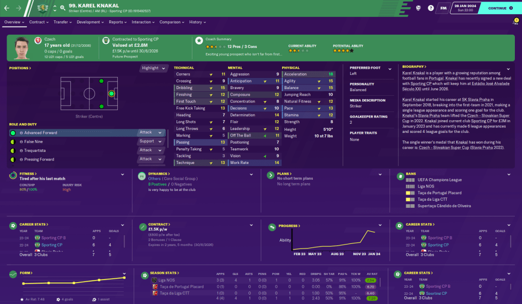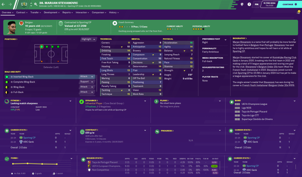 However, one of those prospects Marjan Stevanovic became Sporting’s youngest ever player when I brought him on in a cup game against Porto at the ago of 16 years and 54 days, and my coaches are raving about how good he could be.