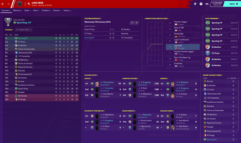 2024 got off to the perfect start as we thumped Academica Coimbra 4-0, thanks to a Meneses brace and a first goal for the club for young striker Filipao, then eased to a 2-0 win over FC Famalicao. Meanwhile, Benfica drew at home to Boavista, lost their game in hand at Belenenses SAD, then drew 1-1 at Estoril Praia, who scored a 92nd minute equaliser. And that gave us a nice little cushion at the top.