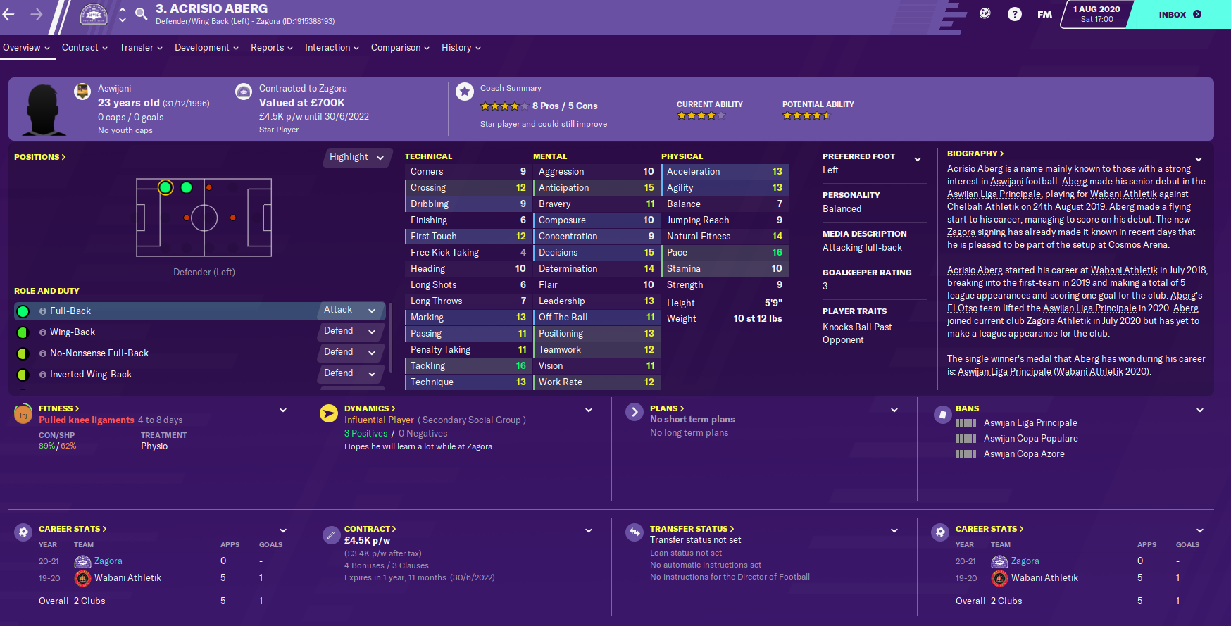 I’m really enjoying managing in this fictional nation of Aswijan and I hope you are too! If you have any questions about the save, the database or want more info on specific players in the squad, just let me know in the comments or get in touch on Twitter.