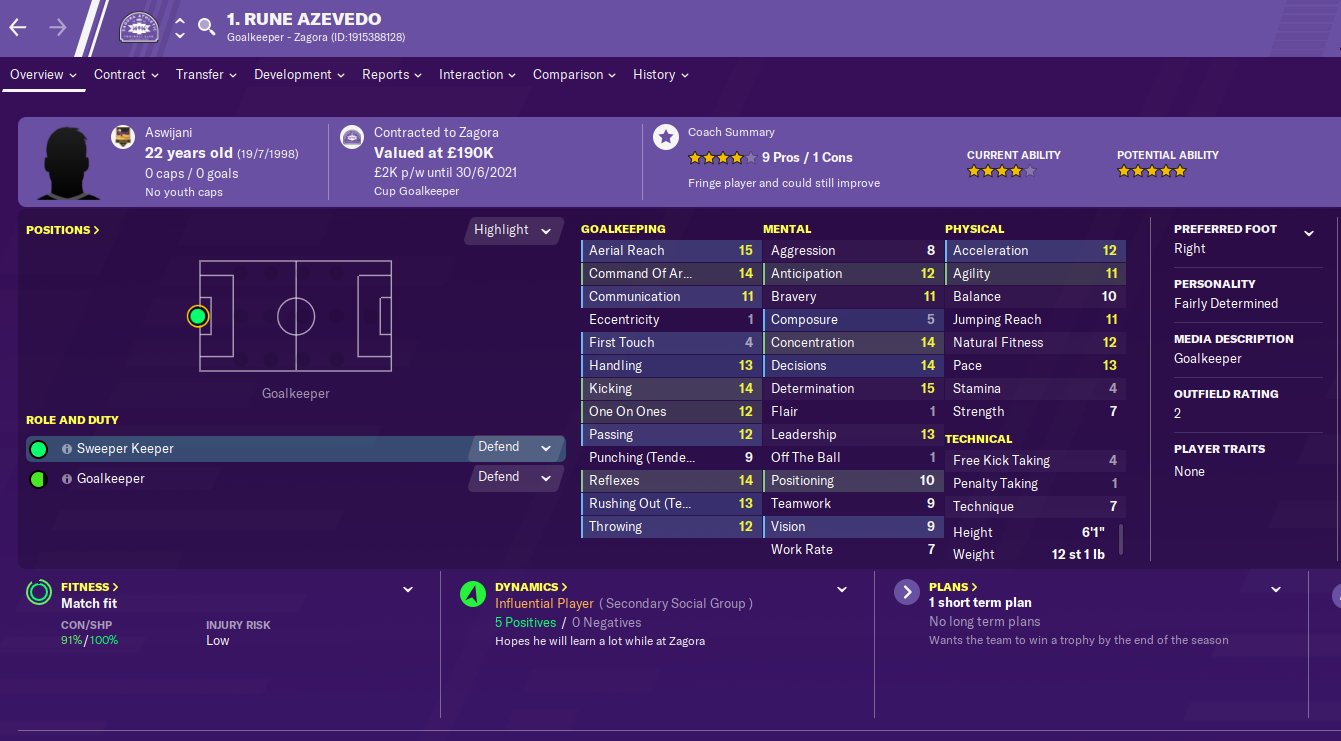 This summer saw our first full signings as Zagora boss, including what I think could be four great free transfer signings. We picked up a new goalkeeper in Rune Azevedo, who comes in as our first-choice, and left-back in Acrisio Aberg, as well as young right-back Millano Ruiz, who has plenty of potential.