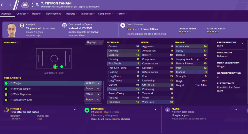 But the player that I’m most excited about is right winger Tryfon Tahani, who was released by Liga Dukh side Bhayid last year. He only scored 4 and got 5 assists in the league, but I think there’s much more to come from him. And, he’s already by far and away our most expensive player at £5.25 million (Arkadios Gram is our most valuable player at £1.1 million).