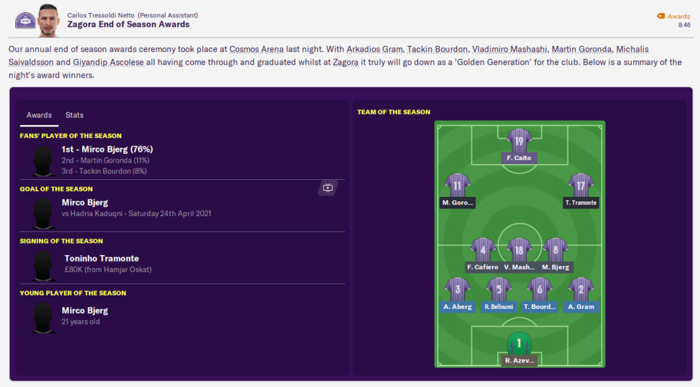Our second season in Aswijan ended with the unbelievable achievement of Zagora Athletik securing promotion from Liga Principale at the first time of asking. And that meant we would be competing in the top tier of Aswijani football, Liga Regale, in 2021/22.