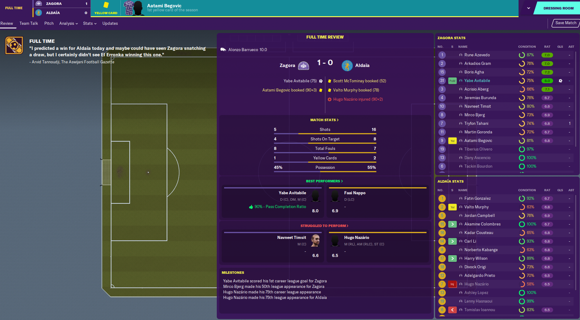 Our first game in the top tier of Aswijani football was away to SCM, and they absolutely battered us. However, they struggled to break us down and only scored after 72 minutes to win 1-0. That said, we didn’t have a shot until the 68th minute, so we definitely didn’t deserve anything from it!
