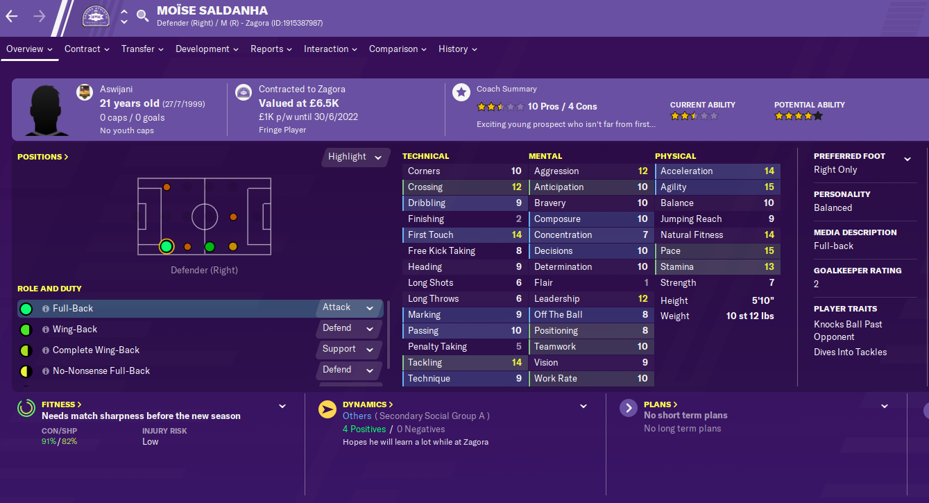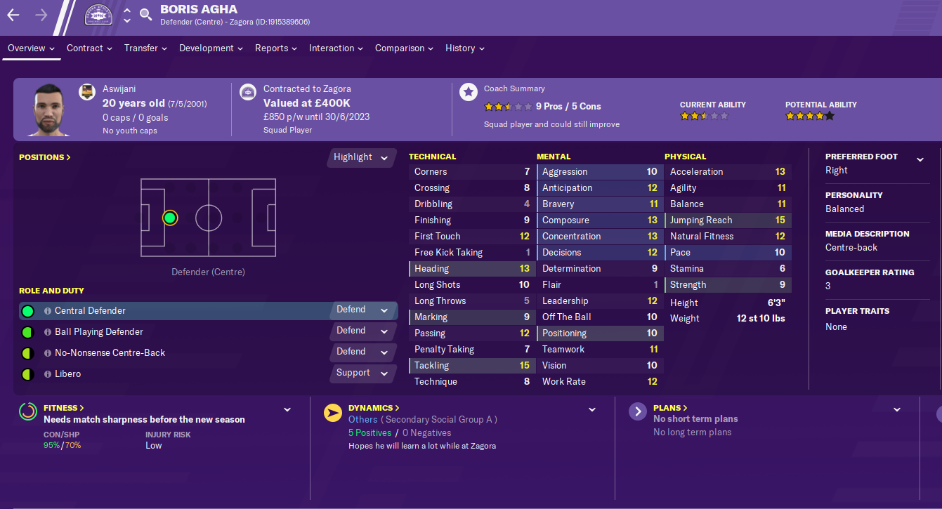 We also strengthened with five free signing, of which I hope the most significant will be 22-year-old striker Aatami Begovic, who arrives upon the expiry of his contract with Aswijan Siti. He’s only played 5 games in 2 seasons but he’s already valued at £12 million and my coaches rate him as our best player.