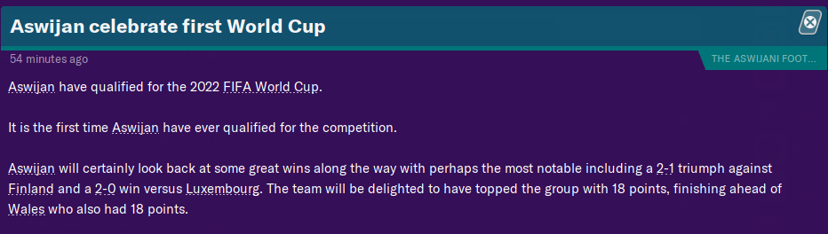 I hope you’re enjoying reading about this fictitious country! If you have any questions about the save or want more info on specific players in the squad, just let me know in the comments or get in touch on Twitter.