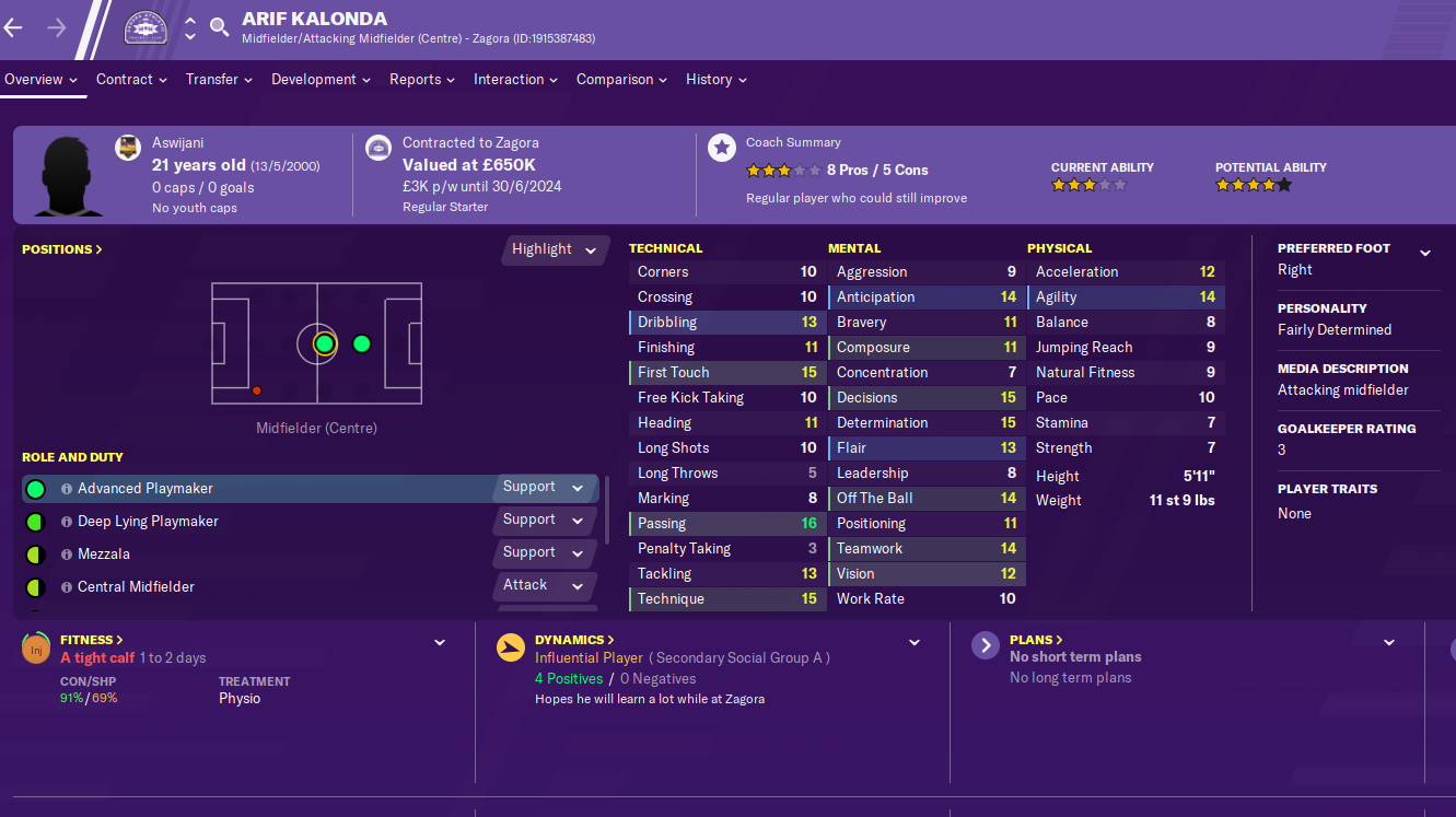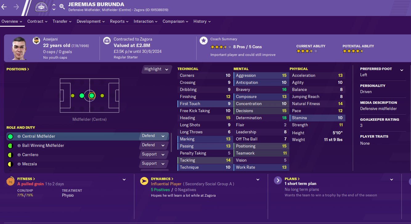 Another free signing is Jeremias Burunda, a defensive midfielder released by Aswijan Malikiy. I think he’ll slot nicely into the middle of our midfield trio, and we could also deploy him in a slightly deeper role.