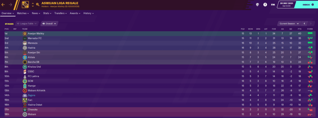 The next day Wabani drew 0-0 at home to Fari, which left us in 14th place and 4 points above the drop zone. But a huge sucker punch followed as right-back Arkadios Gram was ruled out for 5 weeks with a twisted ankle (which seems like a very long lay-off period).