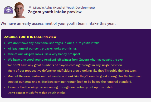 We also got our first look at the next youth intake… which looks rubbish, again, despite some improvements behind the scenes.