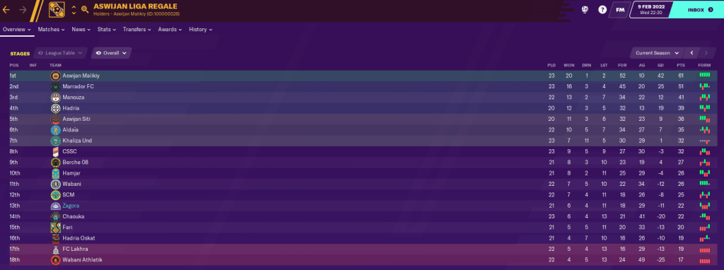 At the mid-way point of Zagora Athletik’s first ever season in the Aswijan top tier, things were going much better than expected. After not winning any of our first 8 matches, we’d picked up 14 points from the next 8 games to climb out of the relegation zone.