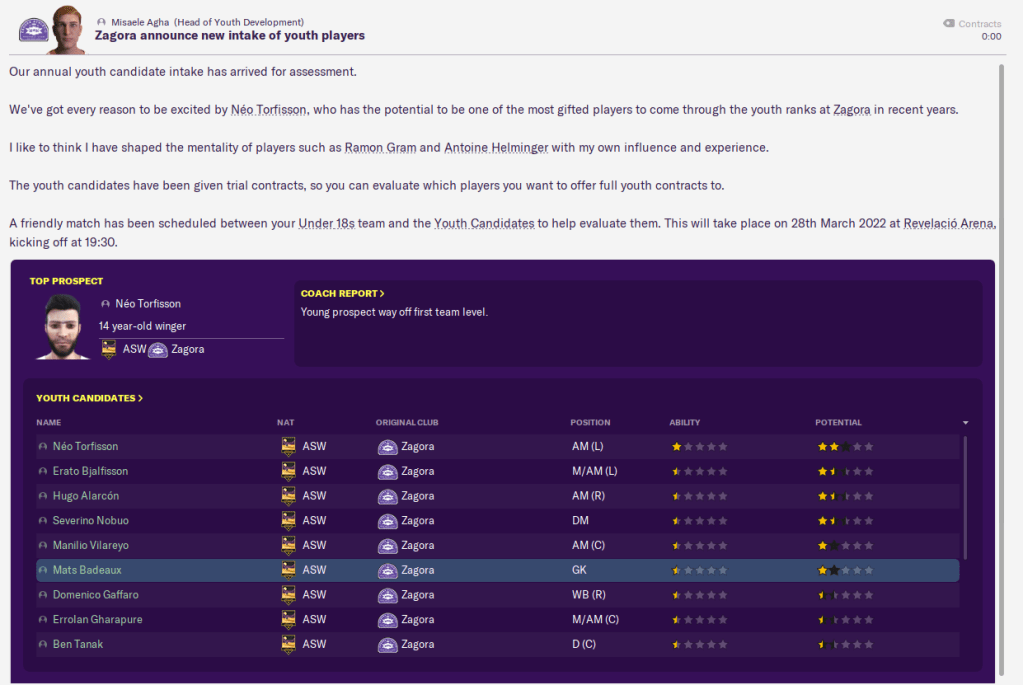 We went to Oskat and earned a 0-0 draw which, again, is a very good result for us. Our youth intake followed this game and, as my head of development had already informed me, it wasn’t very good. Maybe this guy needs to be better at his job?