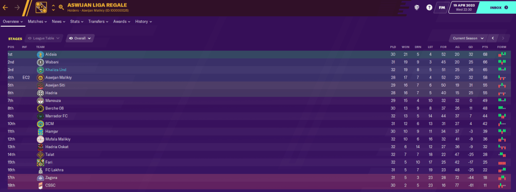I hope you’re enjoying this save in the fictional nation of Aswijan. If you have any questions about it or want more info on specific players at Khaliza Unidi, just let me know in the comments or get in touch on Twitter.