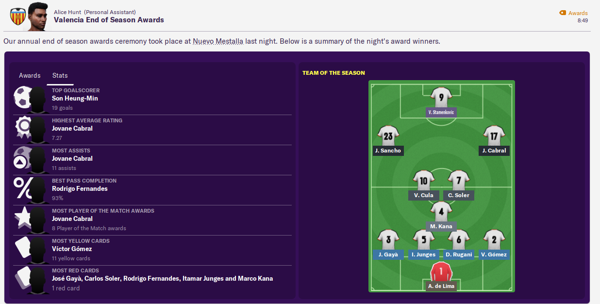 But looking back on this season, two of our key men have two of our key team leaders. Vice-captain José Gaya scored 11 goals and got 4 assists in 42 games from left-back, while captain Carlos Soler scored 8 and got 9 assists from 47 matches.