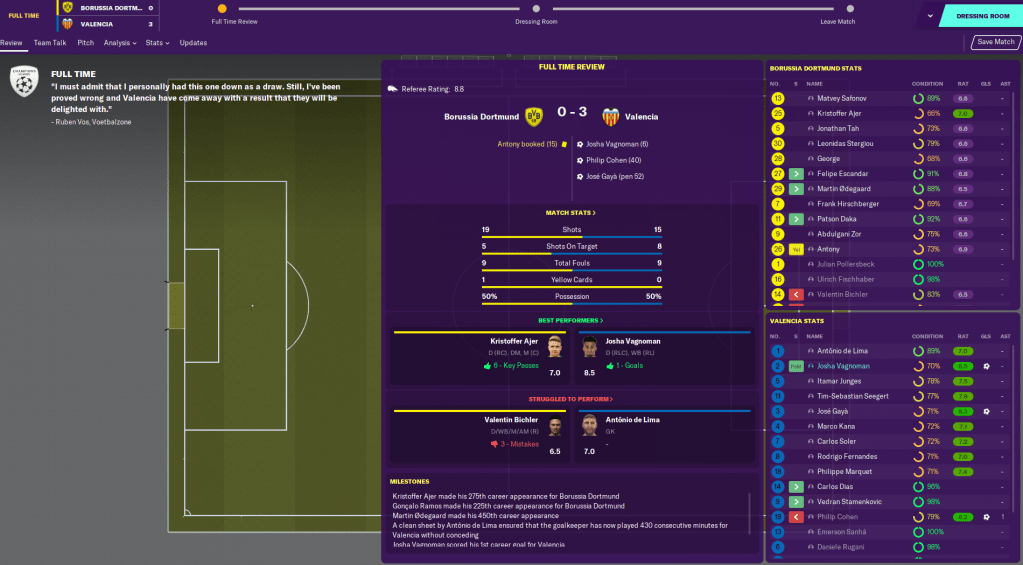 But the English striker was even better as we went away to Dortmund in the first game of our Champions League group. He set up the opener for Vagnoman’s first goal for the club, then scored his first Valencia goal, and won a penalty for Gaya to complete the rout of a strong Dortmund side who were big favourites.