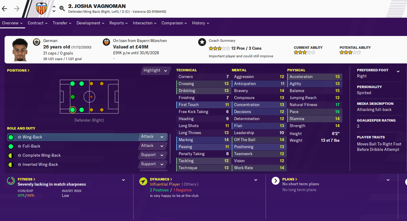 We also sealed a few useful loan deals, of which two came from Manchester United. We brought midfielder Carlos Dias in for another year on loan and brought in his fellow midfielder Freddie Hicks, who looks like a great player. Next we brought in one of my FM favourites as Josha Vagnoman came in for a year from Bayern Munich. And we signed a backup goalkeeper in Benfica’s Emerson Sanhá.