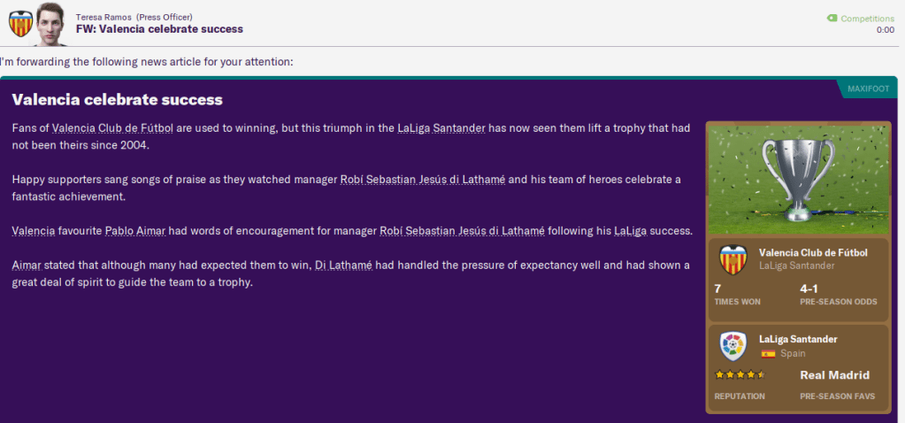 Heading into the final two months of the 2027/28 campaign, Valencia CF were tantalisingly close to their first La Liga title since 2004. But Real Betis were hot on our tails, just 2 points behind in the league and our opponents in the upcoming cup final.