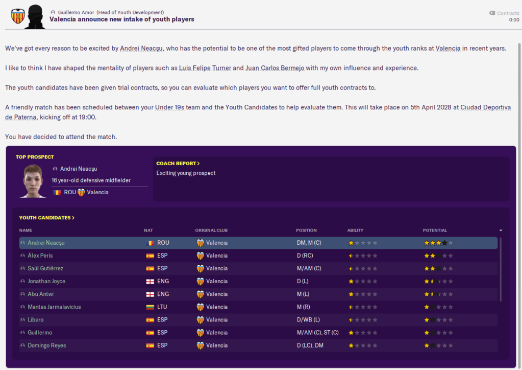 We also had our youth intake come through, which looks average. The best prospect is Romanian midfielder Andrei Neacsu.