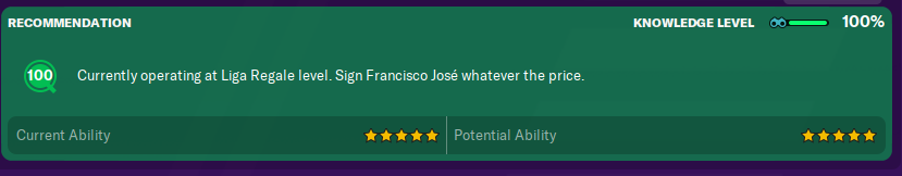 But then things got a bit crazy on deadline day as a scout report came through for a player with a 100 scout rating. I’ve not seen that in any scout report before, and does that mean I’ve found the best player on Football Manager?