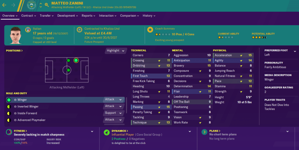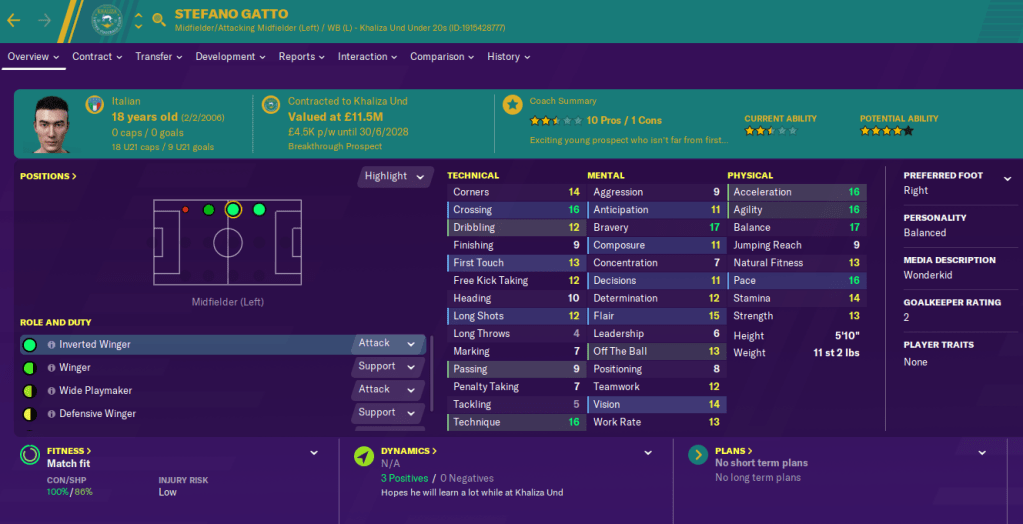 Our first January signing was 17-year-old left winger Matteo Zanini, who arrived for £3 million from AC Milan. Then we paid £20 million for another Italian left winger in Aswijan Siti’s 18-year-old Stefano Gatto – who my scouts had valued at costing upwards of £60 million but he but in a transfer request when they rejected our bid for him.