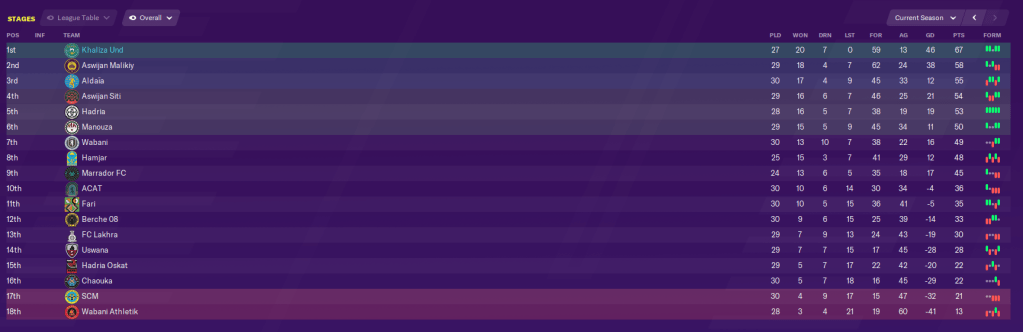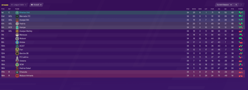 That ensured we finished top of the league, 14 points clear of Marrador and broke club records for most wins, least losses and most points. Malikiy fell apart at the end of the season and finished outside European places down in 6th place. Unsurprisingly, they sacked manager Rutenio Blanco after 12 years in charge.