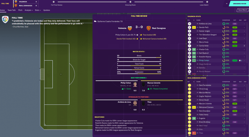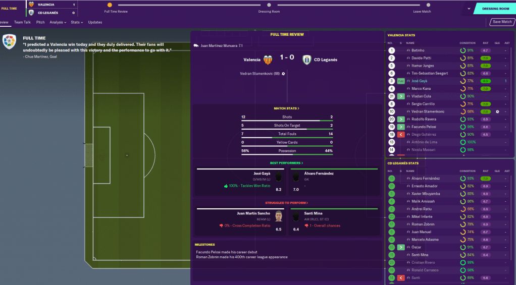 That much-needed win lifted us up to 8th in the league heading into Spain’s winter break which, in the grand scheme of things, isn’t really that bad. And my rating with the board has now gone up to C+.