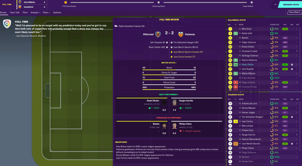 But back at Valencia, we had a pretty quiet summer with only one player leaving the club for a fee and only two arriving for a fee. One that did arrive was exciting 19-year-old striker Facundo Pelosi, who my coaches rate as the best prospect at the club and cost just £2.6 million from River Plate. And we started to plan for José Gaya’s reign at left-back coming to an end with the £7 million signing of French 16-year-old Claude Jolly from Troyes.