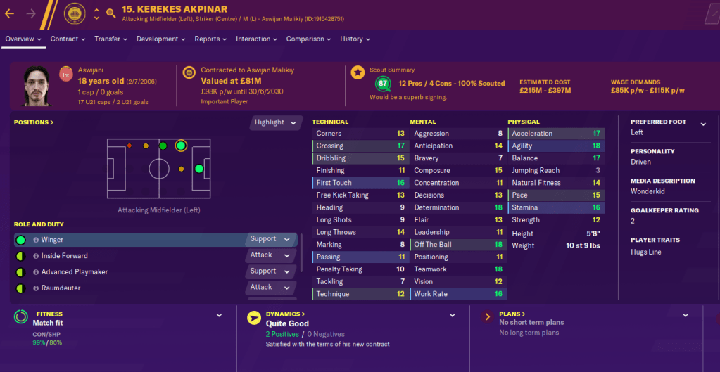 Adli had the second-most assists in the league with 10, which was well behind the tally of Malikiy’s wonderkid Kerekes Akpinar, who also bagged 14 goals. He’s pretty special.