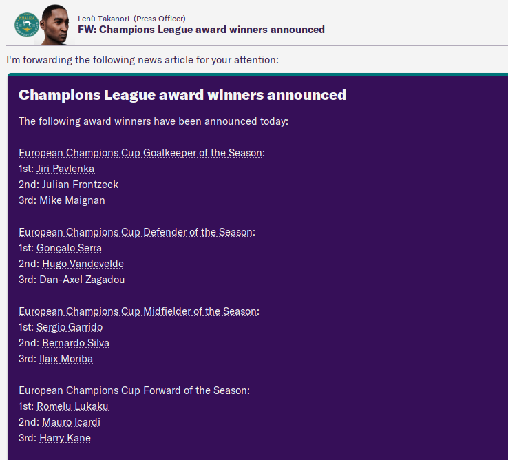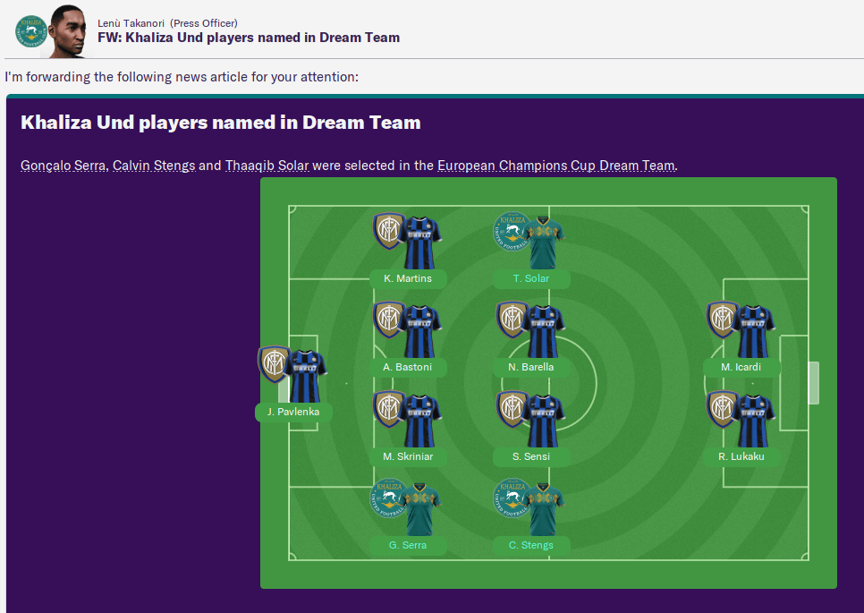 We also had three players in the Champions League Dream Team, with the rest dominated by Inter. Strangely, Serra, Vandevelde and Zagadou were the top three defenders of the season award despite two of them not being in the dream team.