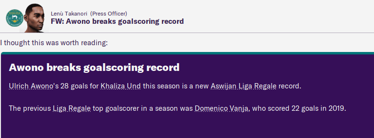 I hope you’ve enjoyed following our story with Zagora Athletik and Khaliza Unidi and I’d encourage you to download the database and give it a go for yourself. That said, I will keep this save and, at some point, I’ll try fast-forwarding it ahead to see how Khaliza and our players fare in the future.