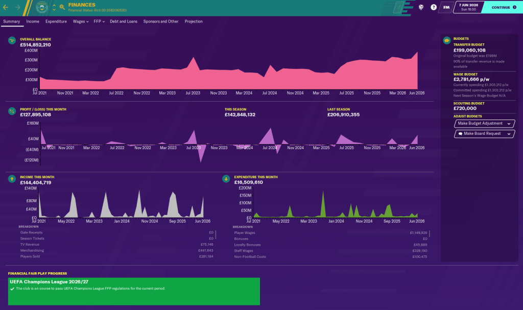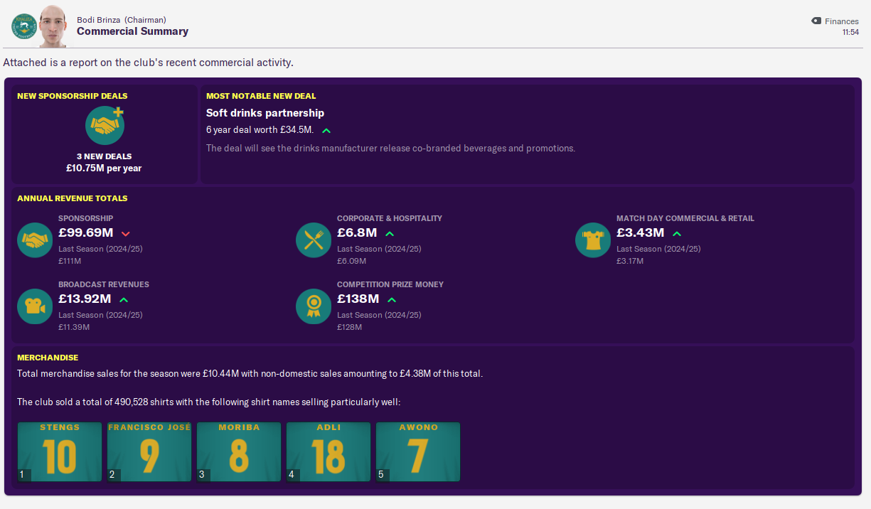 Our success has also seen our finances soar with the bank balance now over the £500 million mark for the first time, largely thanks to a big increase in commercial income. While the European success saw Khaliza Unidi surge to become the 8th most reputable team in the world.