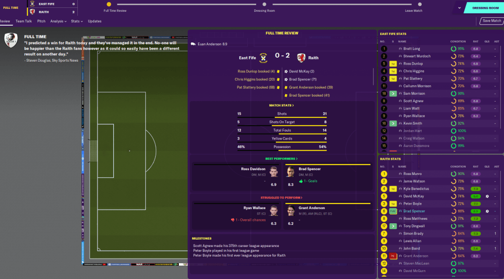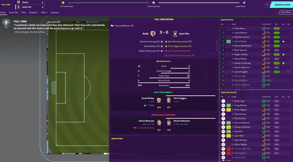 Regardless, we started well at Championship side Dundee and took the lead through midfielder Brad Spencer. But they got level just before half-time and scored another to sneak a win in the second half. Then I got my first win as Raith boss with a 4-1 win at home to Forfar Athletic, in which striker Lewis Allan scored a perfect hat-trick.